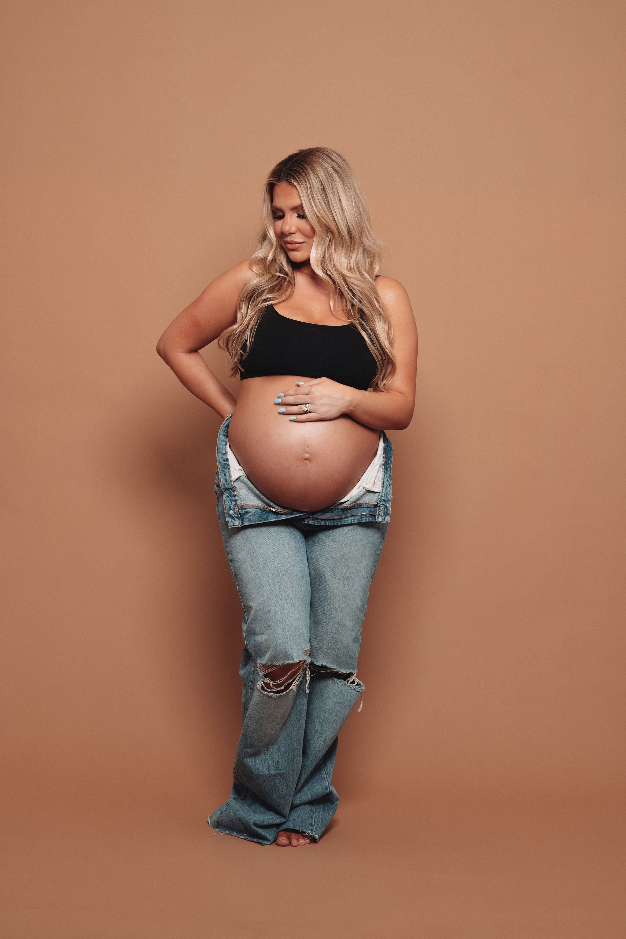 Jenn Davis Imagery - Studio Photoshoot in Birmingham, AlabamaCourtney and Josh came to the studio for maternity pics for their first baby boy! Courtney came ready with inspo pics and multiple outfit choices – I was so excited to use both the tan and white backdrop for these photos! Courtney’s hair and makeup is by Danielle Ivy Chip.
